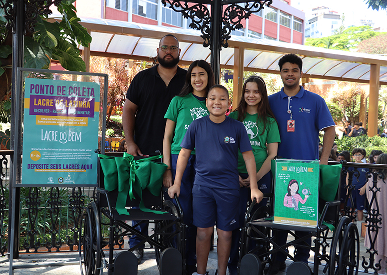 Após um ano do lançamento, a Campanha Lacre de Latinha, apresentada ao Colégio pelo estudante Francisco Pereira, do 4º Ano/EF, e realizada em parceria com a ONG Lacre do Bem, já conseguiu a compra de três cadeiras de rodas.