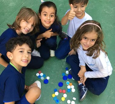 O grupo que terminasse a brincadeira com a maior quantidade de tampinhas vencia. Ao final da brincadeira, depois que a turma havia cumprido todos os desafios, promovemos uma roda de conversa e partilhamos todas as descobertas.
