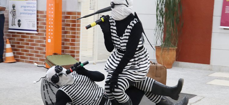 Na sexta-feira, 12 de abril, artistas do Coletivo Mundicá* encenaram a intervenção “O fim da picada”, em apresentações interativas com estudantes, familiares e educadores do Colégio, sobre as medidas de combate ao mosquito Aedes aegypti.