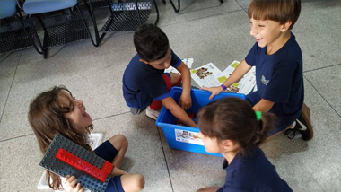 As turmas do 1o ano estudaram, durante os meses de março e abril, sobre as partes do corpo. A turma 14T realizou uma atividade de desconstruir e reconstruir um corpo humano, usando figuras recortadas de revistas. A atividade ocorreu de forma integrada com as aulas em inglês.