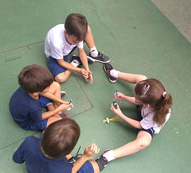 A turma 14T da professora Karina Miranda vivenciou momentos de resgate da tradição indígena nas aulas de Geografia. Com os estudos sobre as brincadeiras indígenas e suas influências no modo de brincar atual, além de brinquedos de origem indígena, a meninada pôde descobrir a origem da peteca e do pião, além de aprender um pouco mais da tradição indígena. A meninada construiu, com as famílias, um pião utilizando revista e um lápis ou palito.