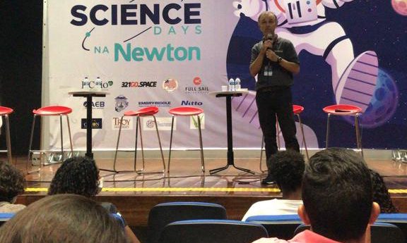 No dia 23 de março, os alunos da eletiva de Astronomia, do 1o Ano do Ensino Médio, acompanhados pelos professores Karine Almeida (QuÃmica) e Newton Barroso (FÃsica), participaram do evento New Space, que ocorreu pela primeira vez em Minas Gerais. Esse evento foi realizado na Faculdade Newton Paiva, em que esteve presente um astronauta da NASA, engenheiros aeroespaciais brasileiros e americanos, que ministraram palestras e realizaram oficinas, envolvendo as diversas aplicações da engenharia aeroespacial. O Science Day teve como objetivo despertar a curiosidade e o interesse sobre o universo da ciência, da tecnologia, da engenharia, das artes e da Matemática, nos estudantes do ensino básico. Nesse dia, os alunos do Colégio Santa Dorotéia tiveram uma experiência muito rica, propiciando uma aprendizagem significativa, e despertando ainda mais o interesse pela Astronomia.