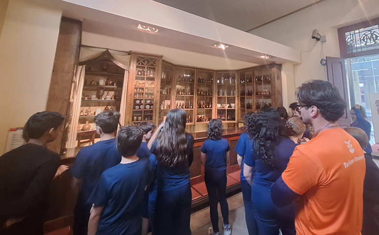 Partindo dessa premissa, estudantes do 7º Ano/EF realizaram no dia 29 de agosto uma visita ao Museu de Artes e OfÃcios, no Centro de Belo Horizonte. Essa atividade buscou promover uma memória viva do trabalho artesanal e manual, oferecendo um panorama completo da evolução dos saberes e das técnicas que moldaram a base da produção no Brasil.