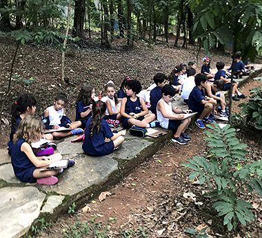 A Turma 12T estava ansiosa para chegar o dia que irÃamos à Mata do Colégio. Algumas crianças já conheciam, para os novatos foi uma novidade! No dia combinado, fizemos um passeio pela Mata e aproveitamos para observar os seres vivos e elementos não vivos encontrados lá.